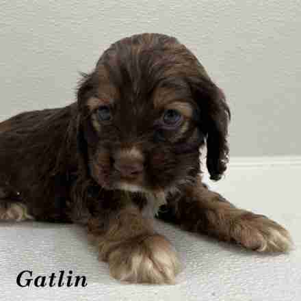 Gatlin is a gorgeous Tri-color Sable American Cocker boy. Just look at this handsome man! He is cute and he knows it! It is love at first sight!