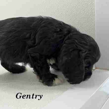 Gentry is a beautiful Black & Fawn Sable w/ White American Cocker boy. Gentry is a lazy little guy, he just loves to take naps.
