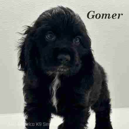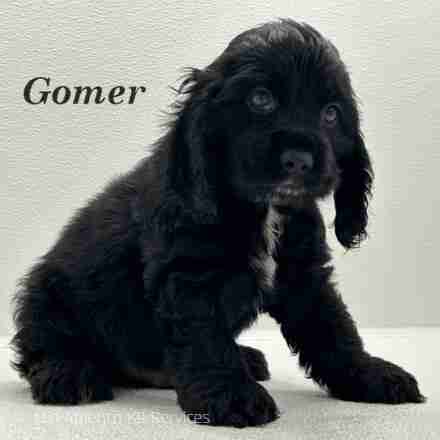 Gomer is a Black w/ White American Cocker boy. This handsome little man will make you love him instantly. He loves to cuddle your neck and give kisses.