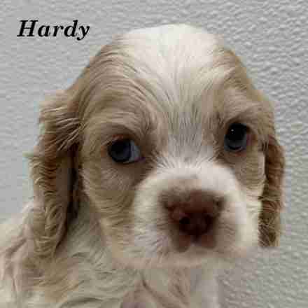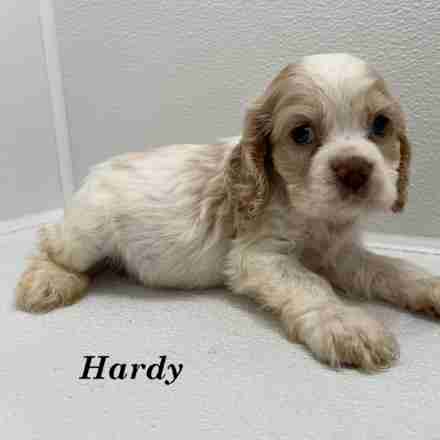 Hardy is a Buff & White Parti Cockalier boy. This little man is a sweetheart. He loves to give you kisses, and curl up on your lap and nap.