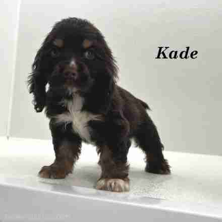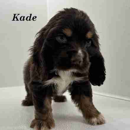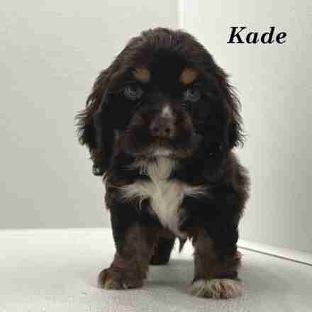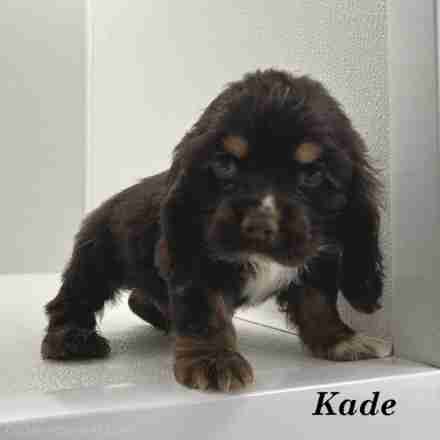 Kade is a handsome Chocolate & Tan w/ White American Cocker boy. Kade is a playful little guy. He would be perfect for kids.