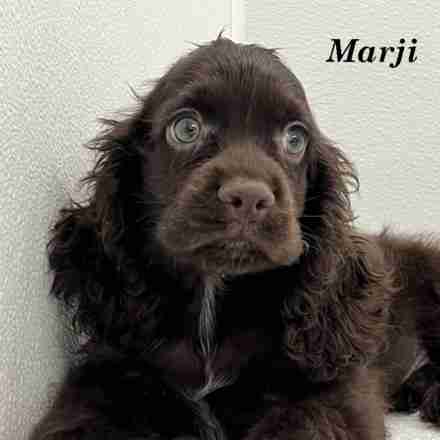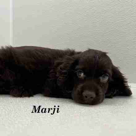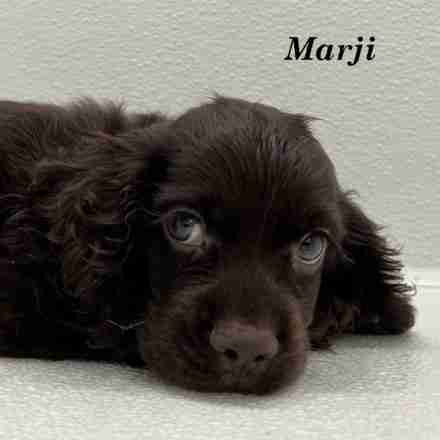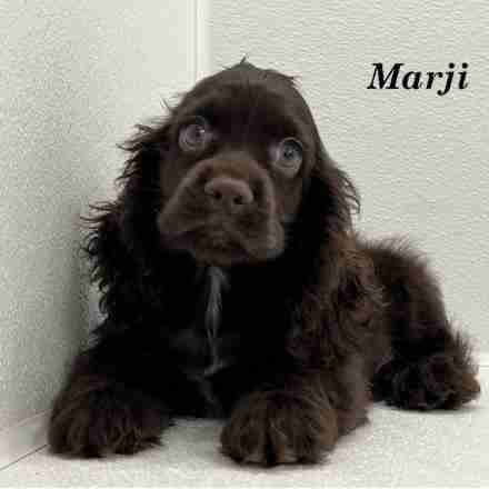 Marji is a Chocolate w/ White American Cocker girl. Marji is a super sweet girl who loves to give kisses. She was not to sure about my camera though.