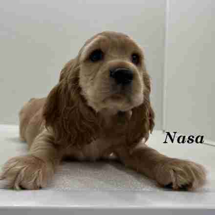 Nasa is a Golden American Cocker boy. Nasa is a very handsome boy. You can not tell it in this picture but he is going to be a big boy.