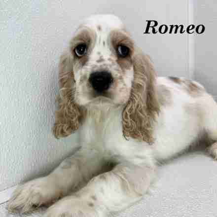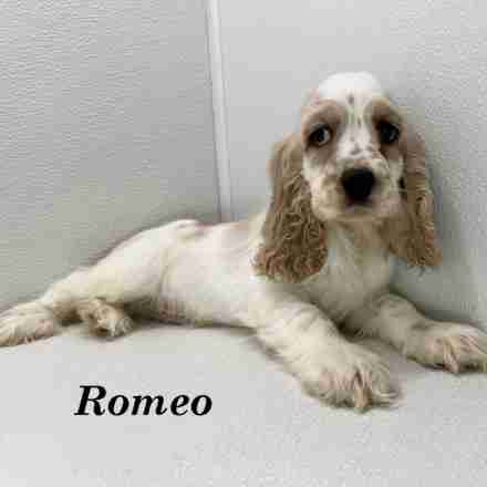 Romeo is a Buff & White Parti American Cocker boy. Romeo was not at all sure what to think o f my camera. As soon as I would put my phone down, he would run right over to me and start covering my face in kisses.