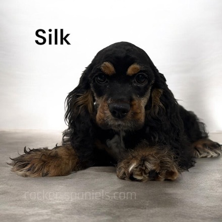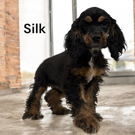 Silk is a gorgeous girl. She happens to be the only girl in this litter. Her coat is super soft, just like silk!
