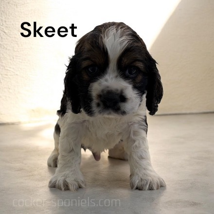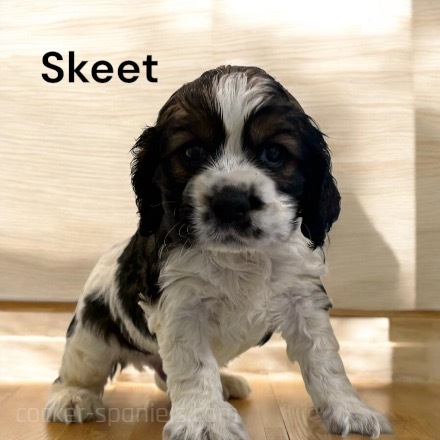 Skeet, just like his brother Spinner, is going to be a handsome Black Sable & White Parti. As he gets older the black will fade away mostly. He is going to be so handsome.